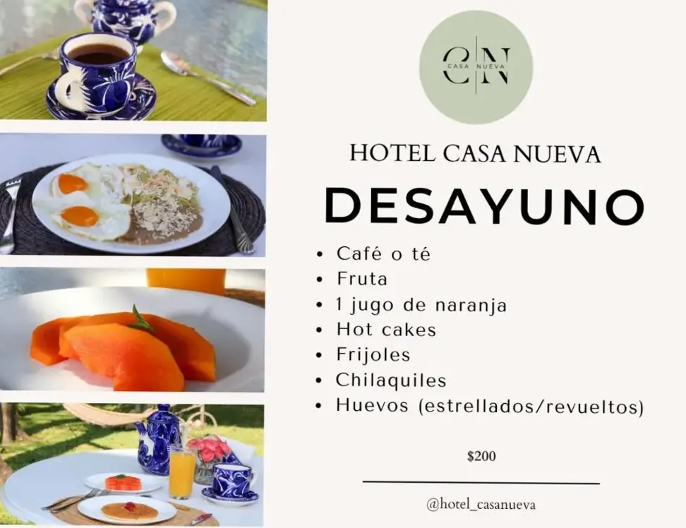 Hotel Casa Nueva se encuentra situado en calle nueva 16 col centro, 62980 Tlaquiltenango, México. Ofrece una amplia gama de servicios incluyendo piscina al aire libre, gimnasio, desayuno, bar, estacionamiento gratuito y habitaciones no fumadoras. Las opiniones destacan las instalaciones excelentes, el buen estado de mantenimiento y el ambiente acogedor. Los huéspedes han mencionado especialmente la calidad del mobiliario, la accesibilidad de la entrada y la hospitalidad del personal. Cerca del establecimiento hay opciones gastronómicas como Antojería Gabys a 200 metros y Erika Fonda a 250 metros. También se encuentran puntos de interés cercanos como Pulqueque a 4.5 kilómetros y Cajón cruzado a 18 kilómetros.